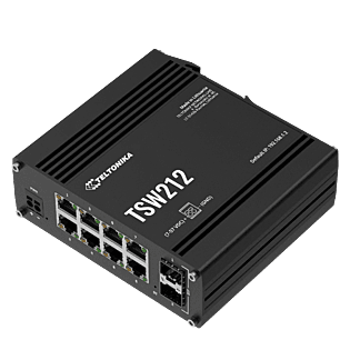 MANAGED ETHERNET SWITCH TSW212 is an L2 managed Ethernet switch with additional L3 features, like DHCPv6 client support and static IPv6 routing. This switch supports protocols, including EtherNet/IP, PROFINET, and MRP, and has 8 Gigabit Ethernet ports and 2 SFP ports to ensure robust long-range fibre optic communication.